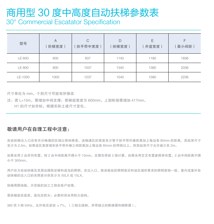 商用型30度中高度自動扶梯